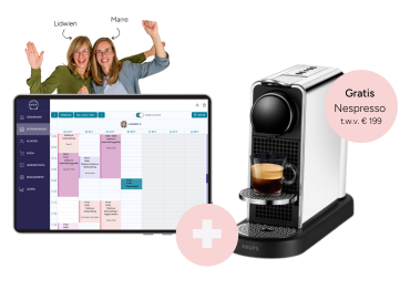 Werk je nog niet met onze software? De eerste 25 aanmelders voor onze software krijgen bij ZZP Complete, Team Plus of Team VIP een gratis Nespresso-apparaat t.w.v. €199 thuisgestuurd.